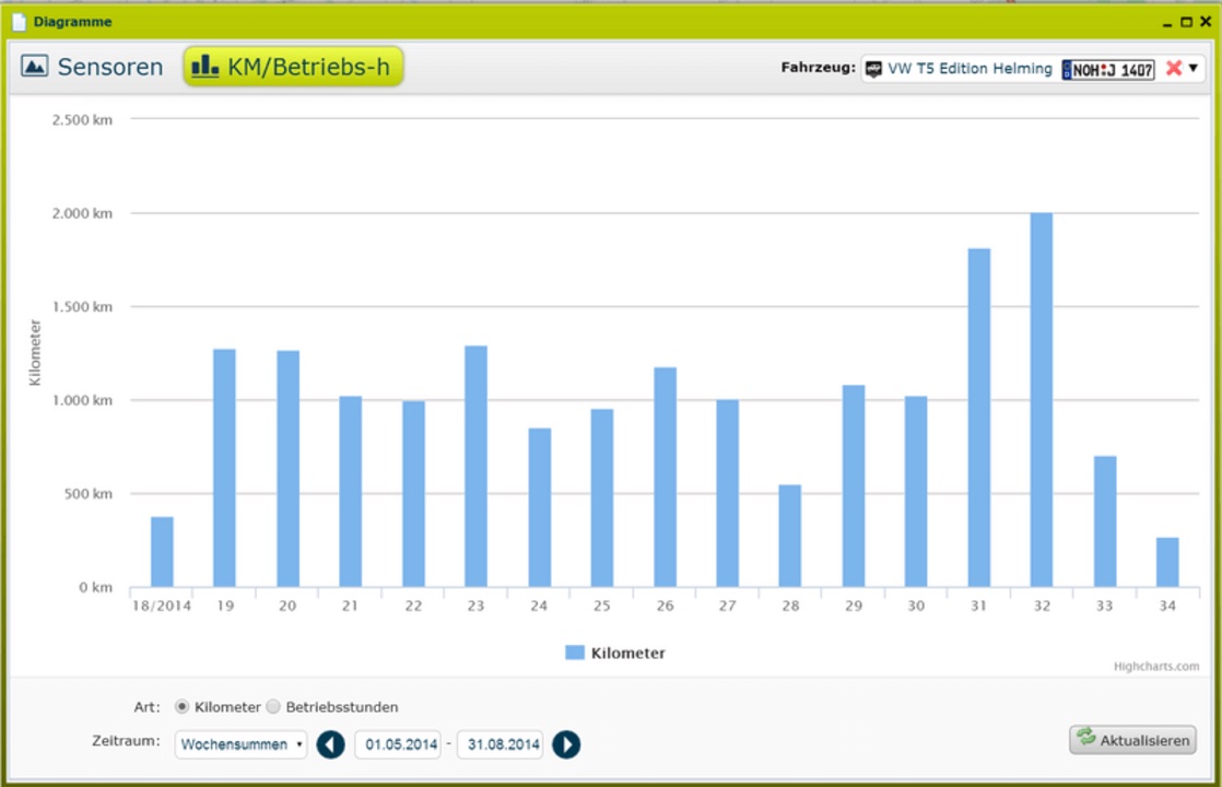 Weiterhin helfen statistische Daten dabei, Kilometerleistungen oder Betriebsstunden projektbezogen auszuwerten. So ermitteln Sie verschiedenste Eckdaten Ihres Fuhrparks per Knopfdruck.