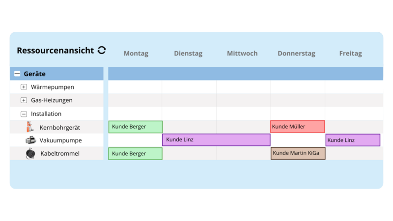 Eine digitale Ressourcenplanung bündelt alle relevanten Informationen in einem System. Verfügbarkeiten von Mitarbeitenden, Fahrzeugeinsätze, Maschinenzustände, Abwesenheiten und laufende Projekte werden automatisch berücksichtigt. So erkennen Betriebe frühzeitig Engpässe und können ihre Kapazitäten realistisch einschätzen, statt kurzfristig improvisieren zu müssen.